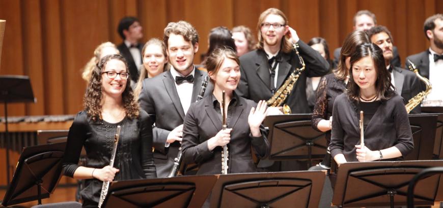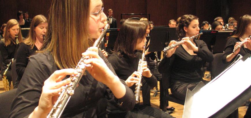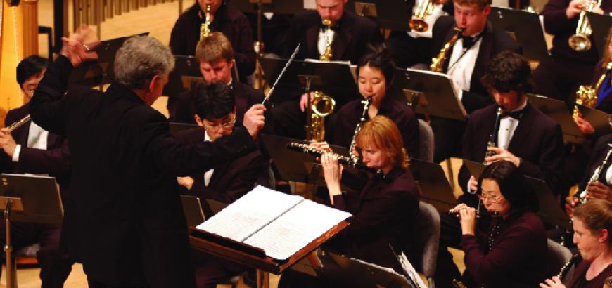 In addition to degree pathways in Instrumental Performance and Wind Ensemble Conducting, the School of Music supports a range of auditioned and non-auditioned ensemble bands—four in all—open to majors and non-majors from throughout the university.