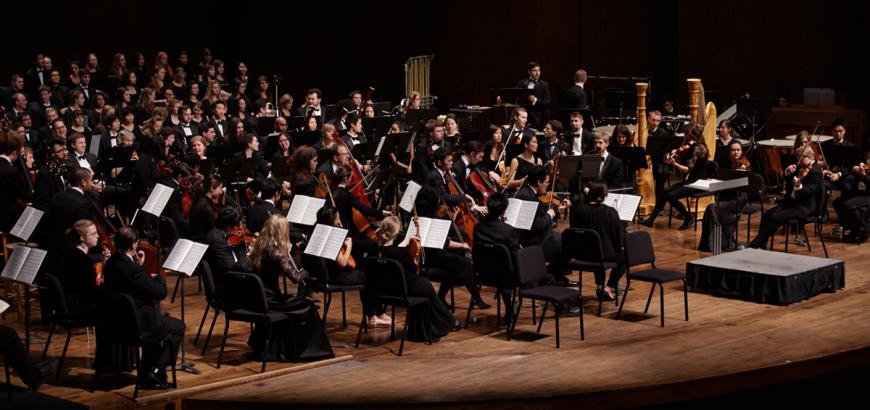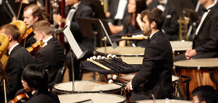 In addition to degree pathways in Instrumental Performance and Orchestral Conducting, the School of Music supports a range of auditioned and non-auditioned ensemble orchestras—three in all—open to majors and non-majors from throughout the university.