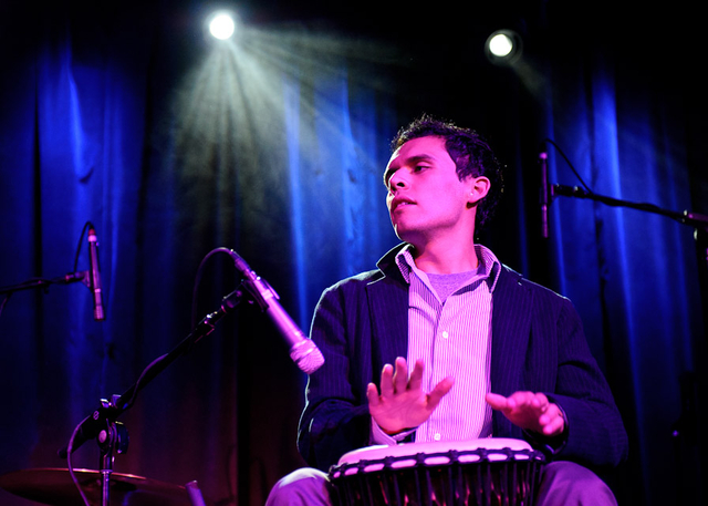 Percussionist Ivan Trevino leads a master class with UW music students.