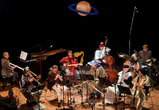 Costumes and processionals in the spirit of Sun Ra prevail, along with group vocals and other features of Sun Ra’s music Nov. 18 at the Jones Playhouse when a mix of musicians including former UW students, retired faculty members Stuart Dempster and Bill Smith, and members of the Seattle music community gather to pay tribute to the intergalactic jazz pioneer in his centenary year.