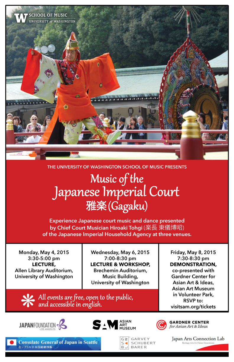 Experience Japanese court music and dance presented by Chief Court Musician Hiroaki Tohgi (楽長 東儀博昭) of the Japanese Imperial Household Agency.