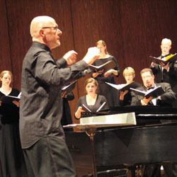 Geoffrey conducts the UW Chamber Singers, the university's premier ensemble of graduate and advanced singers. The Chamber Singers performs nationally and internationally, most recently having returned from Hungary for a concert tour. Last Spring, the choir performed Monteverdi's rarely heard masterpiece, 1610 Vespers. He also teaches graduate choral conducting and choral pedagogy, and serves as faculty advisor as part of the graduate choral curriculum. He is the recipient of the University of Washington's prestigious Royalty Research Foundation Grant, which allowed him to travel to the Baltic region and to establish the UW Baltic Choral Music Library, the first of its kind in the United States.