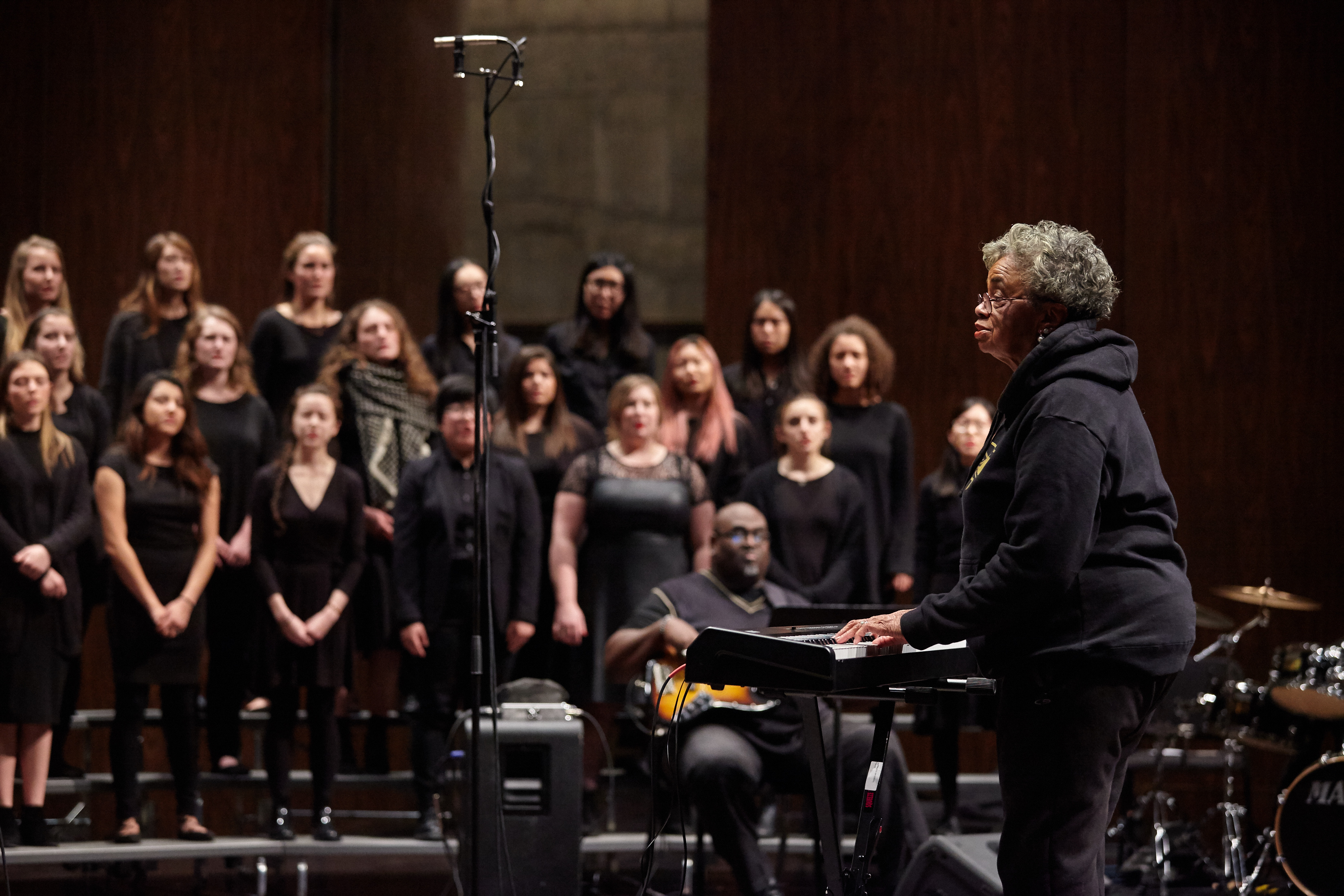 Phyllis Byrdwell leads the UW Gospel Choir in its winter quarter concert. Also appearing: The Mount Zion New Revelations/Praise Team.