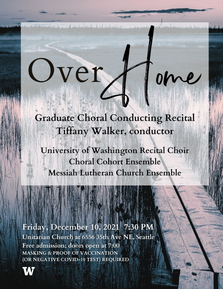 Graduate Choral Conducting student Tiffany Walker presents "Over Home," a DMA recital featuring the University Recital Choir, Choral Cohort Ensemble, and Messiah Lutheran Church Ensemble.