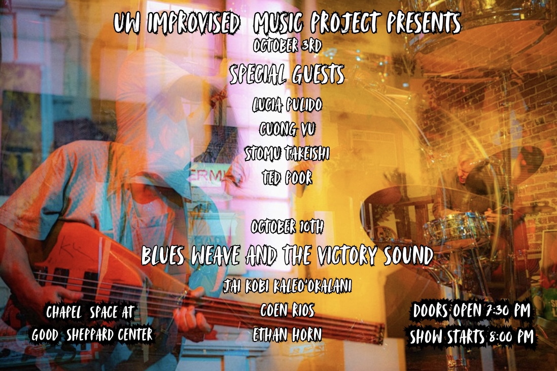 The Improvised Music Project presents Blues Weave and the Victory Sound, featuring UW Jazz Studies students Jai Kobi Kaleo 'Okalani, Coen Rios, and Ethan Horn.