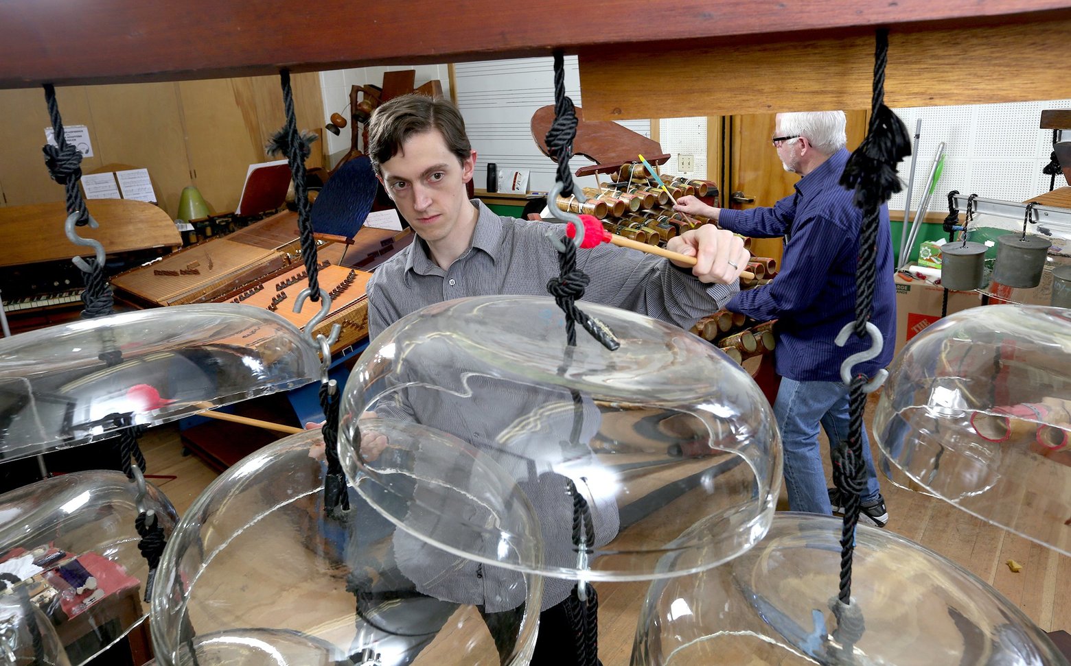 Music-making devices invented and built by maverick American composer Harry Partch (1901-1974), constructed from wood, bamboo, glass, found objects and altered string and keyboard instruments, are in residence at the School of Music. Read more in this article by Michael Upchurch in the April 20 issue of the Seattle TImes.